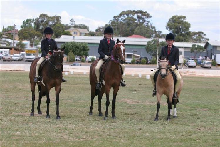 Sheridan Hammet (Left) with Willowcroft Small Talk and Carrie Hammet (middle) with Ascot Gold Edtion at the Buckskin all breeds show-Bendigo 3/12/05